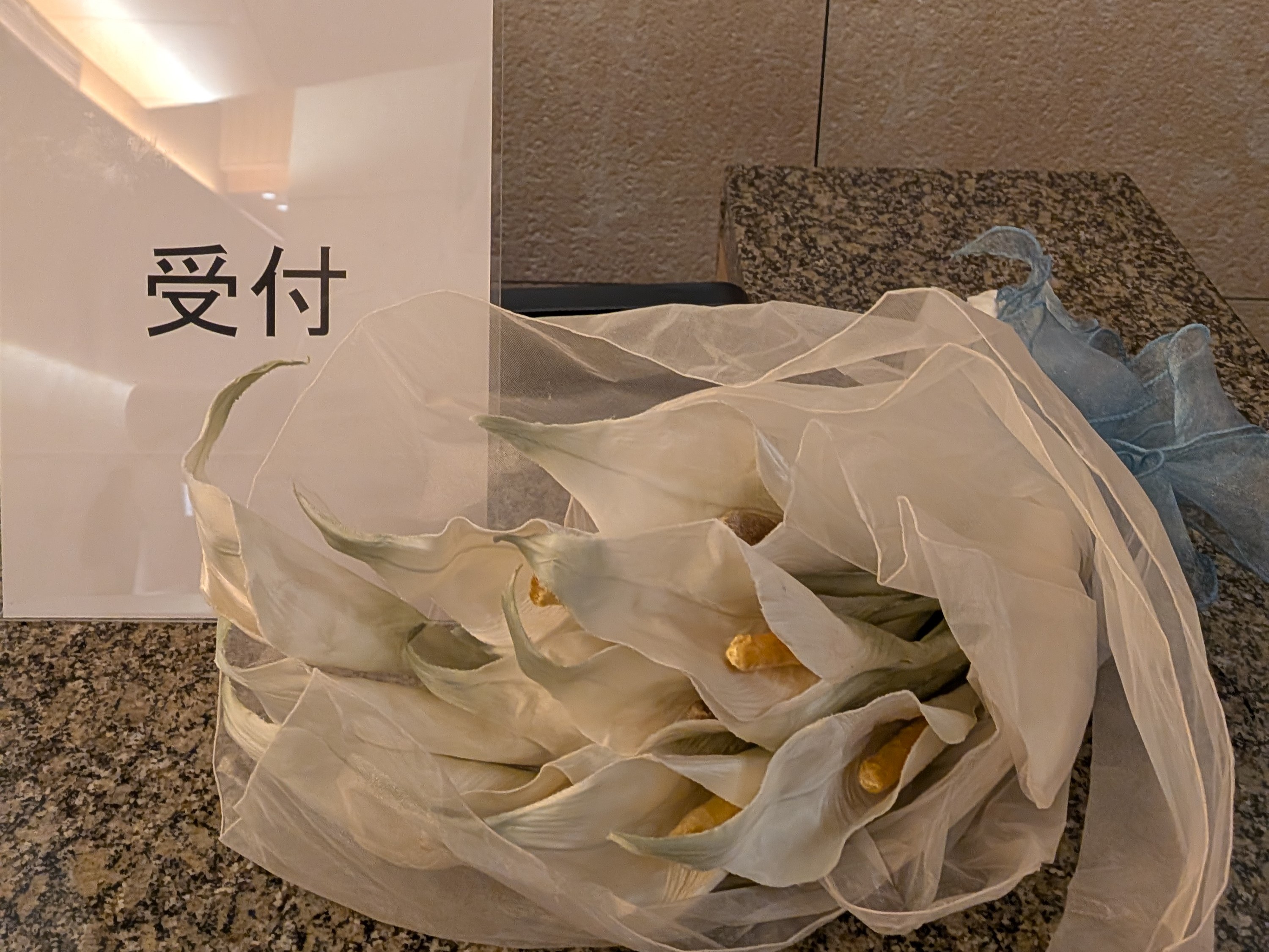 受付に飾られたシルクフラワー
